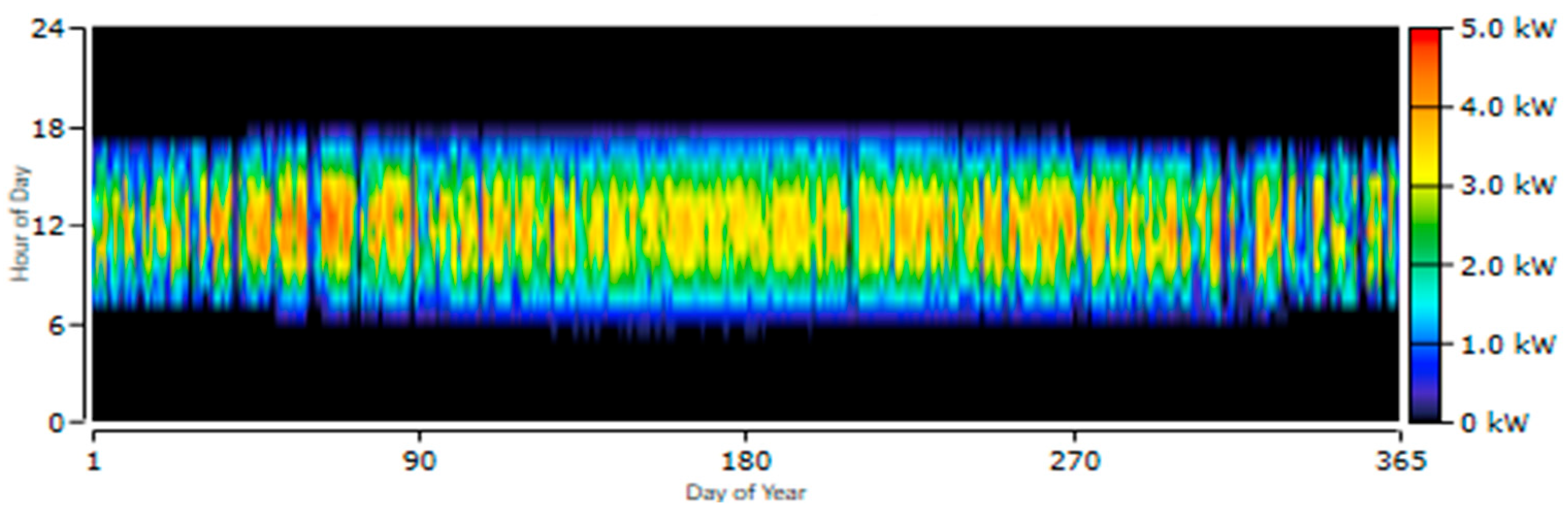 19]. HOMER enables techno-economic simulations of complex hybrid systems by optimizing the balance between renewable generation, grid contribution, and operational cost under varying conditions of load, resource availability, and financial parameters.