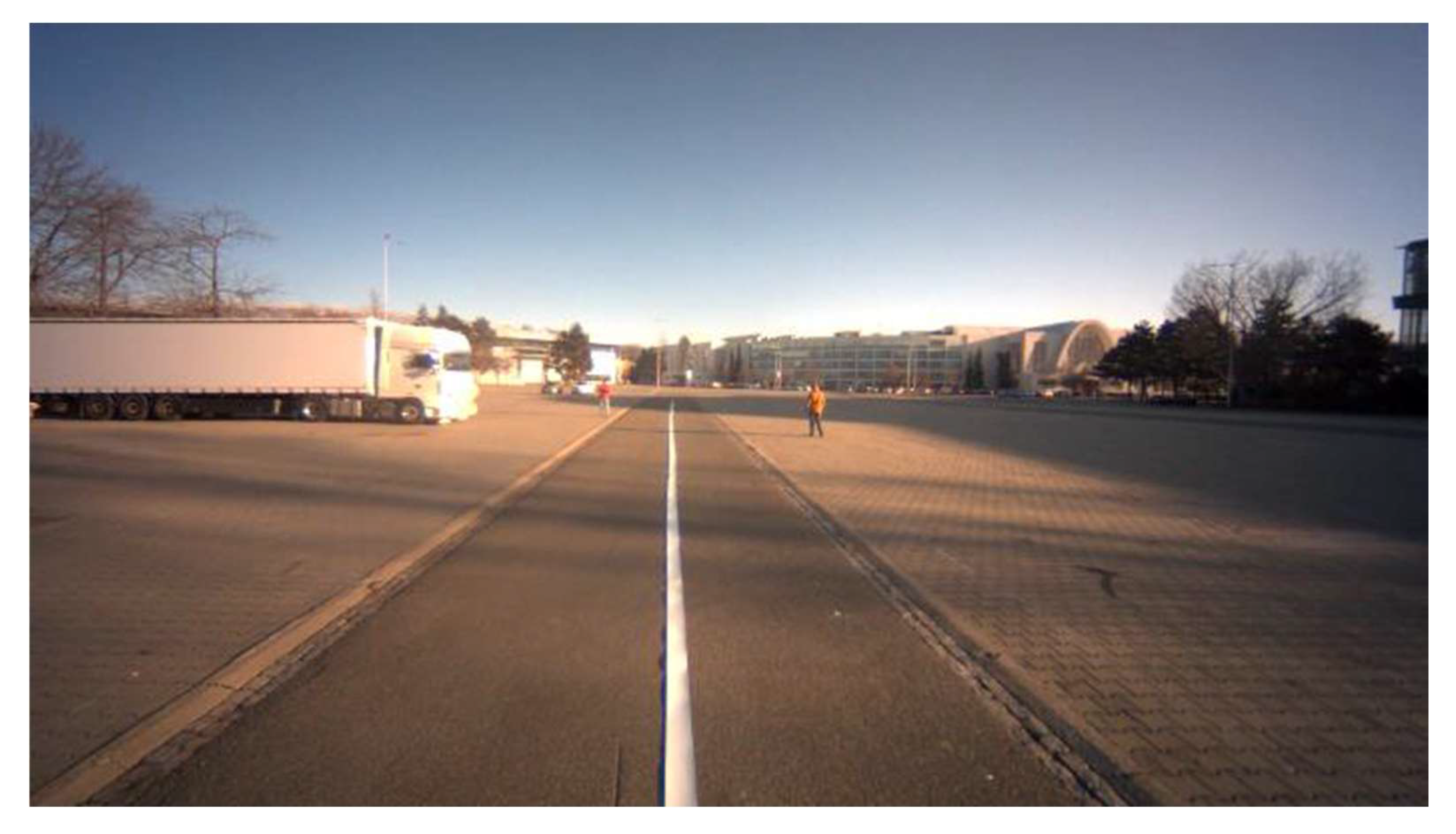 Solid line to the left of the vehicle (simulation of the center line): this scenario represented driving near the road’s center line, which is common in urban traffic.