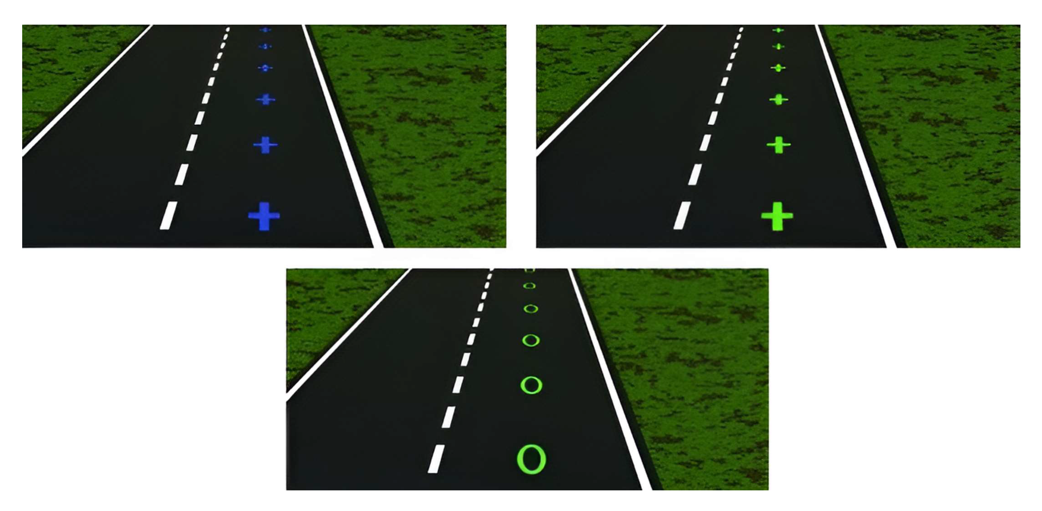In addition to the technical parameters of virtual tracks, it is also necessary to consider the characteristics of traffic psychological parameters. It is essential to ensure that these virtual tracks are distinguishable from horizontal traffic signs by other drivers. It is not just about preventing drivers from confusing virtual tracks with horizontal traffic signs, but also about ensuring that they do not distract drivers while driving. This is a psychological aspect.