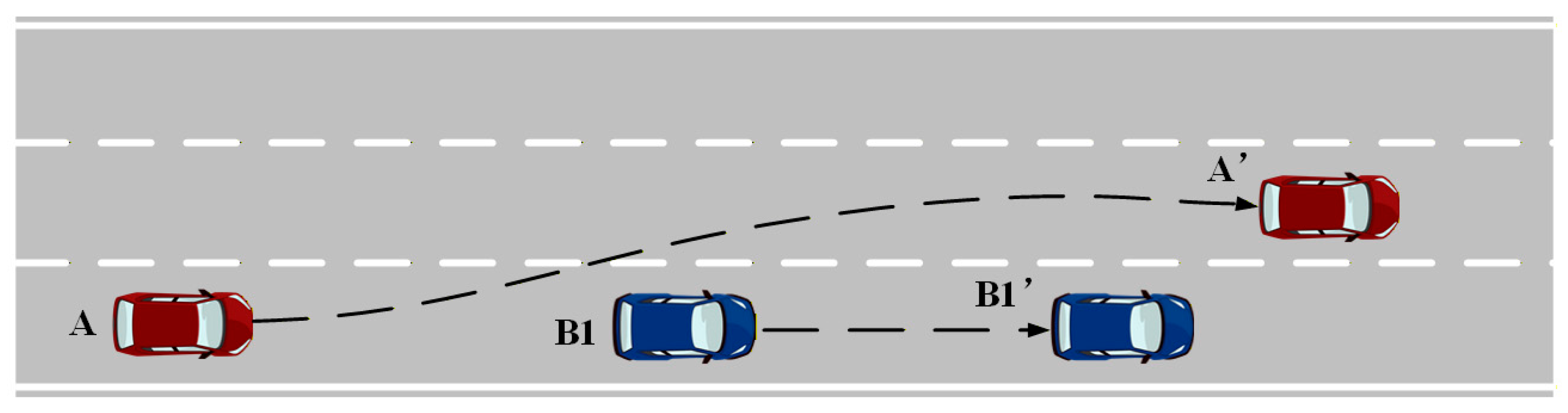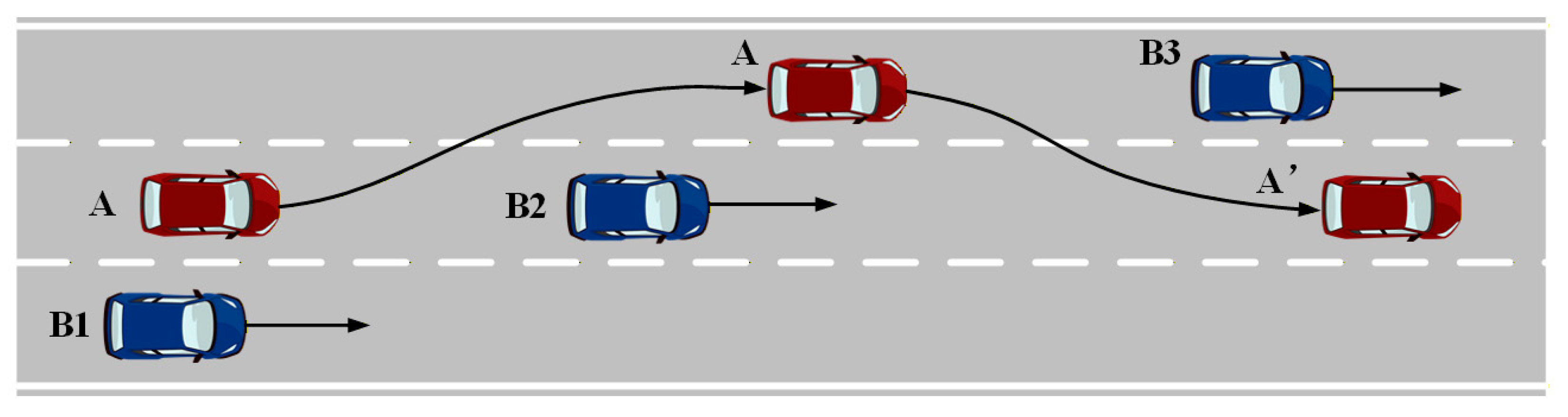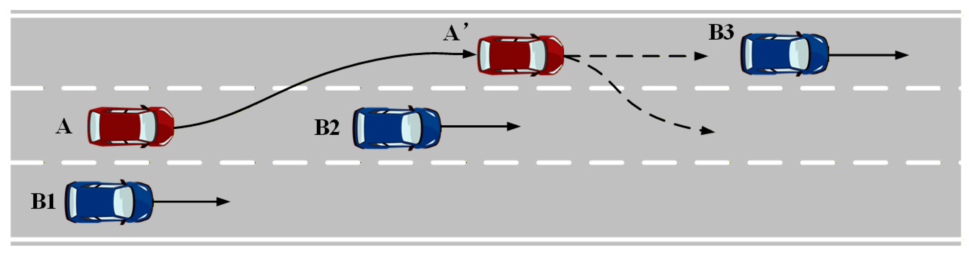 27] for the interaction between the self-vehicle A and the vehicle B2 in the target lane is shown in