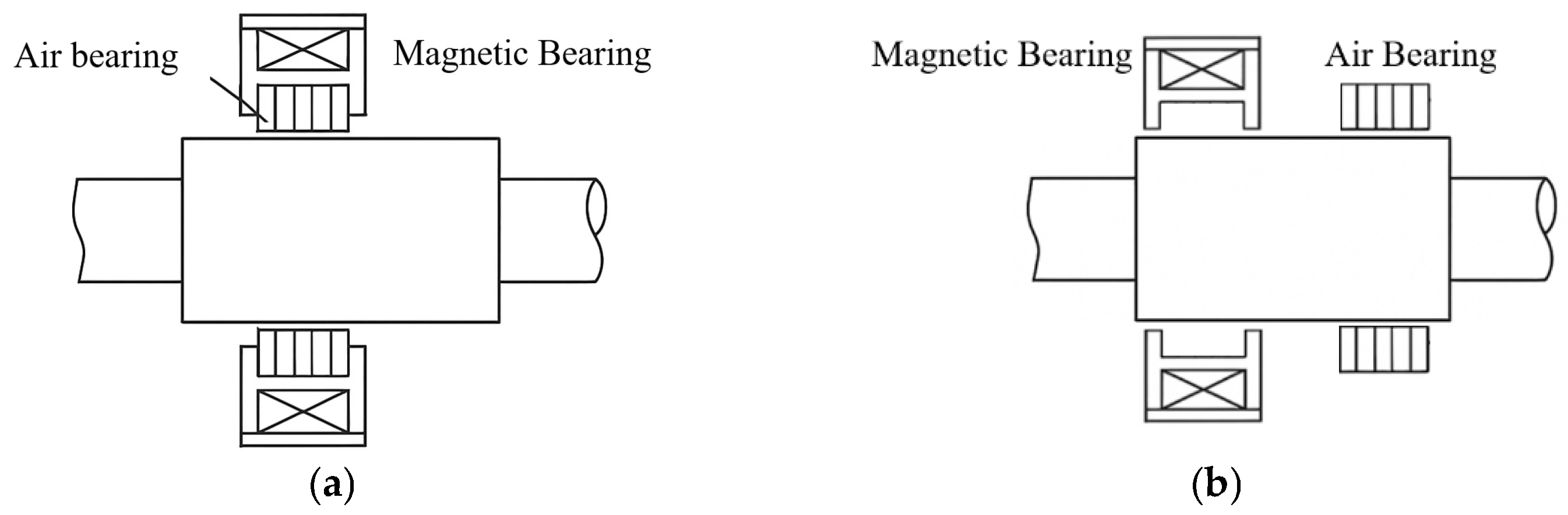 - Du, Y.; Zhang, G.; Hua, W. Review on Research and Development of Magnetic Bearings. Energies 2025, 18, 3222. [Google Scholar] [CrossRef]