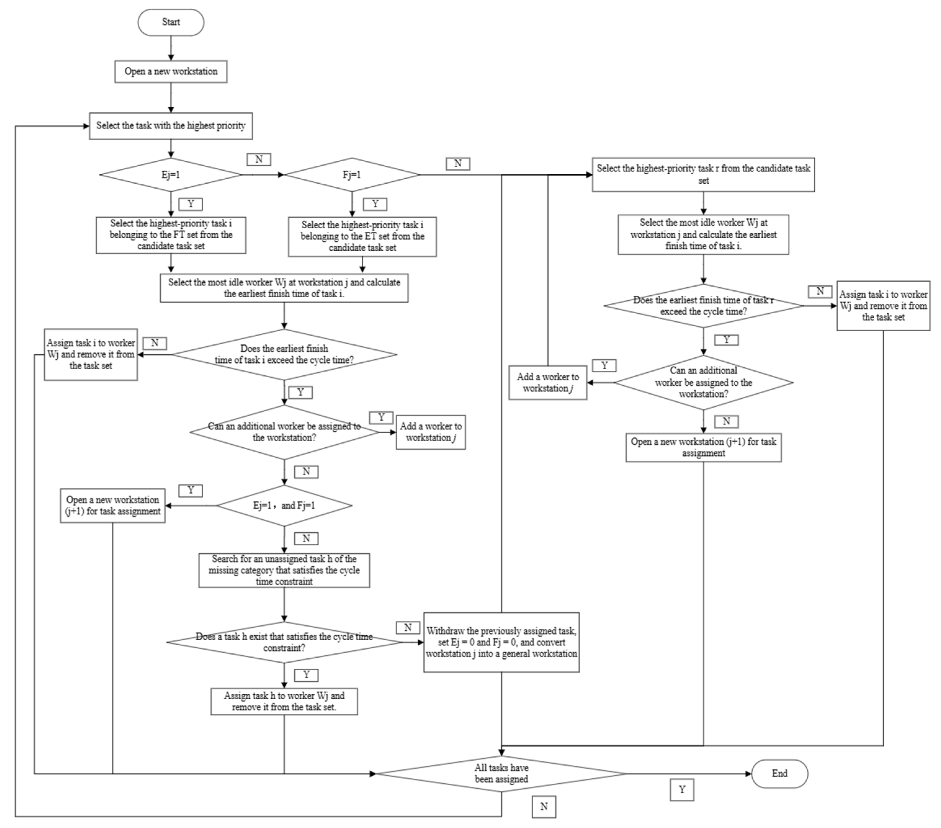 - Update the candidate set P and repeat the operation until all tasks are assigned.