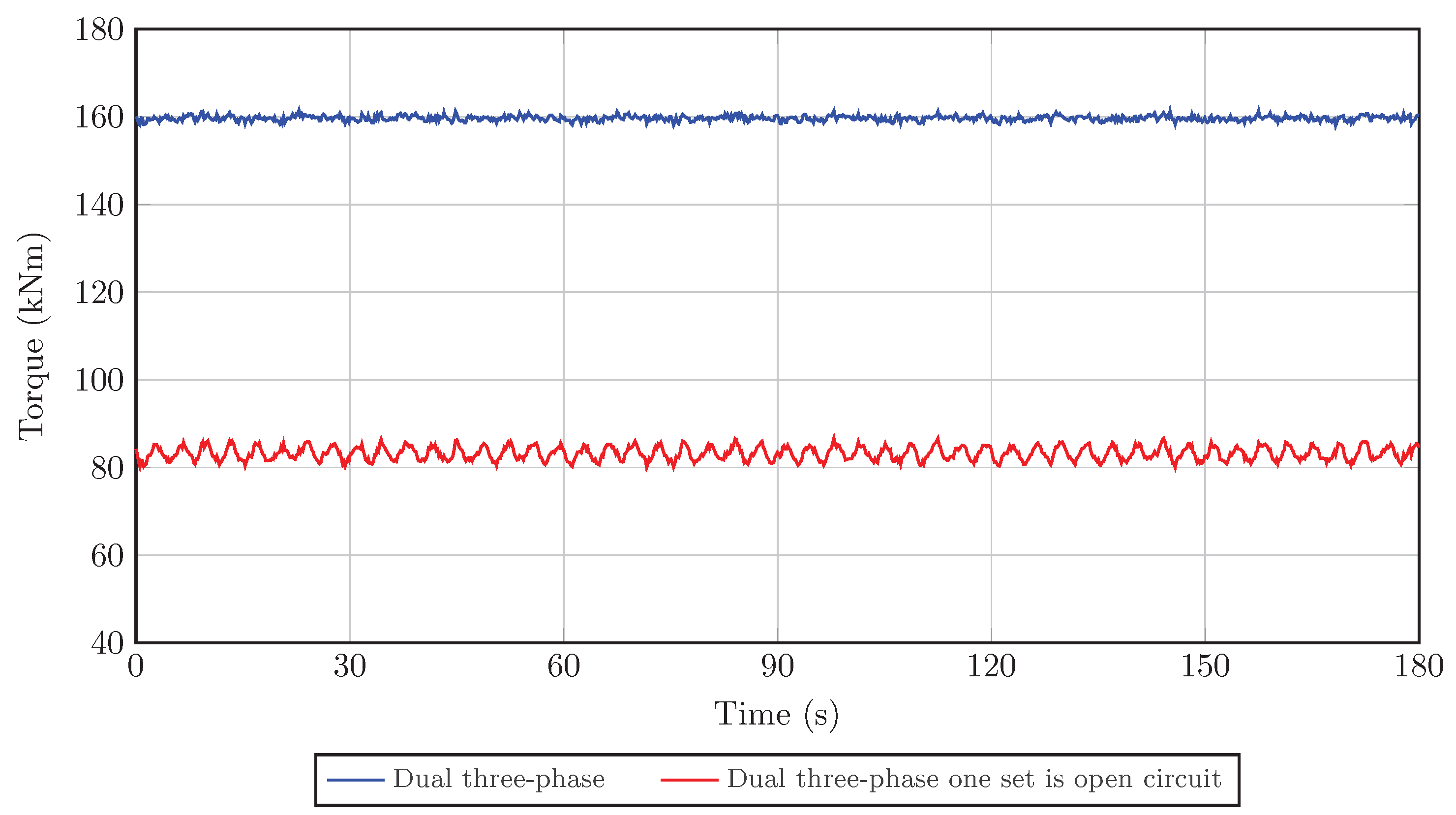 Figure 5. Torque comparison of the DTP-PMVM in healthy conditions versus when one winding set is open-circuited.