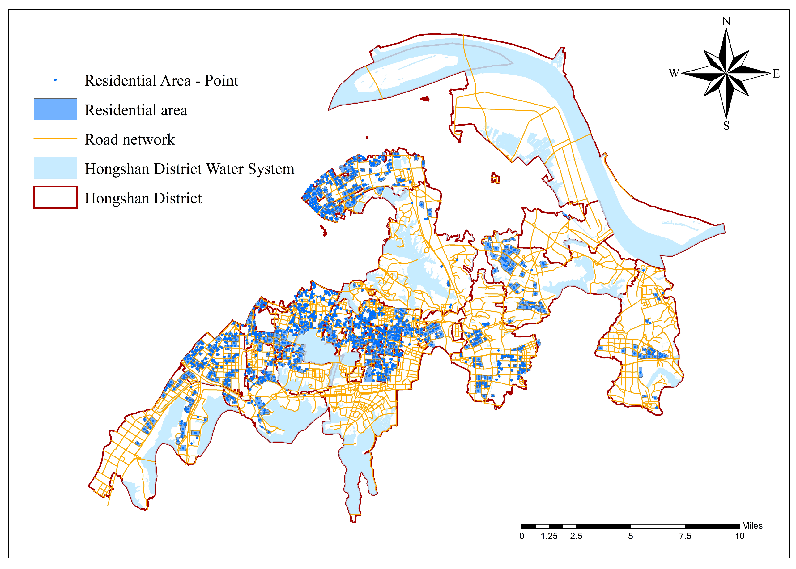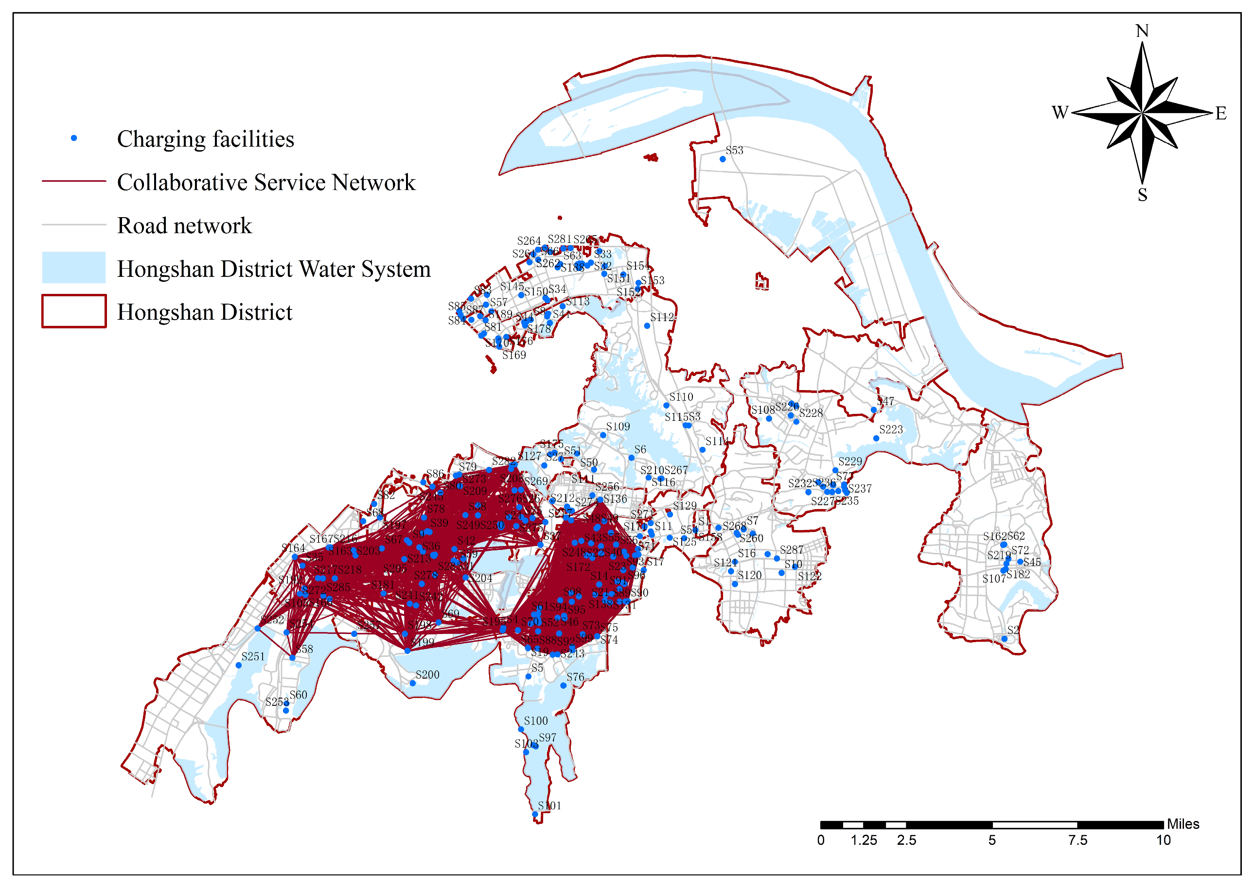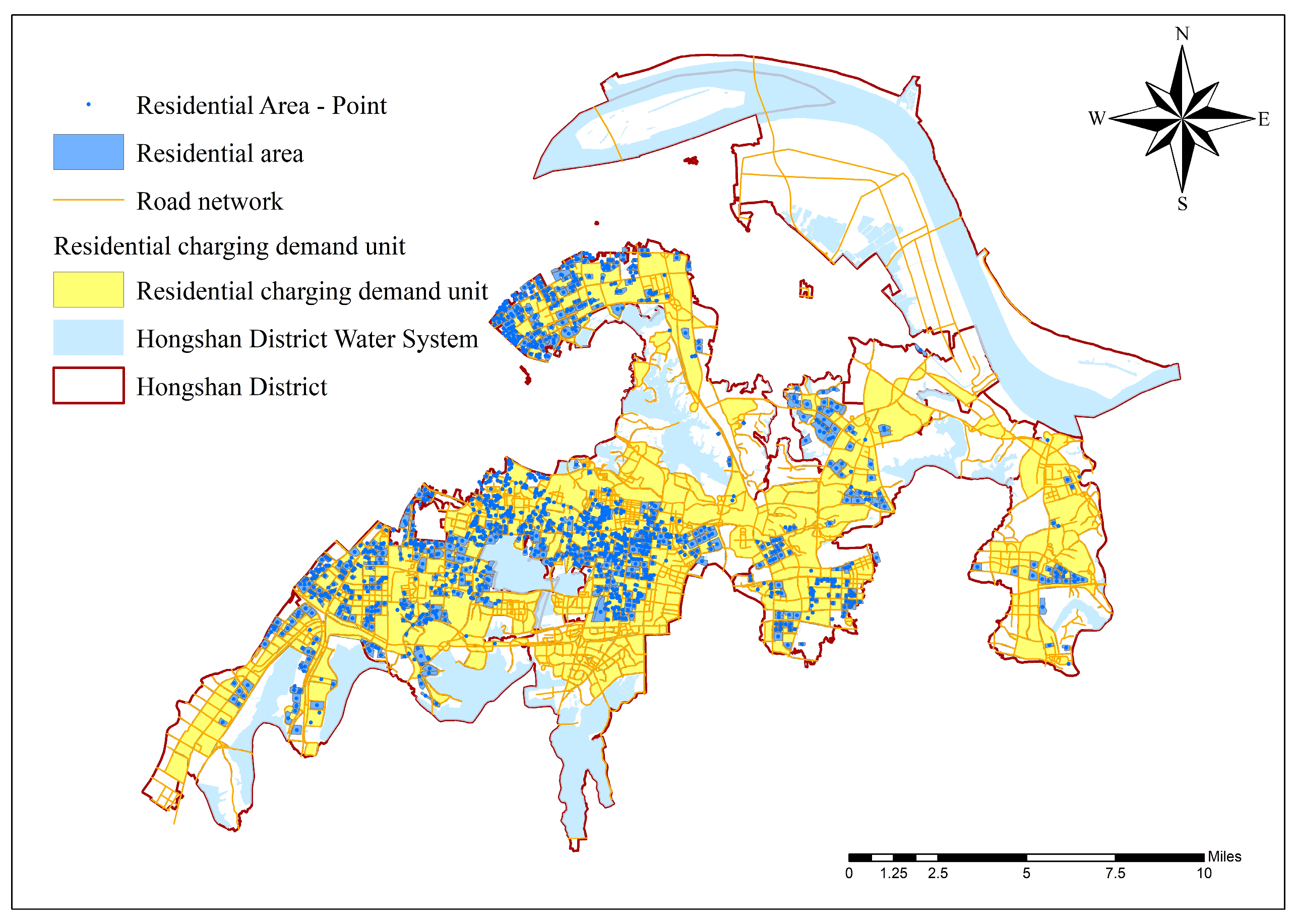 Figure 1). According to relevant policies, from 2024 to 2025, the district plans to build and upgrade a total of 7890 charging piles, 82 public charging stations, and 8 battery swapping stations. By the end of 2024, it was said that there would be a total of 1464 residential areas under the jurisdiction of Hongshan District, with 287 effective charging facilities. This study provides relevant recommendations and strategies for the construction and improvement of charging facilities in residential areas of Hongshan District, based on the perspective of collaborative service supply and the balance of residential charging demand.