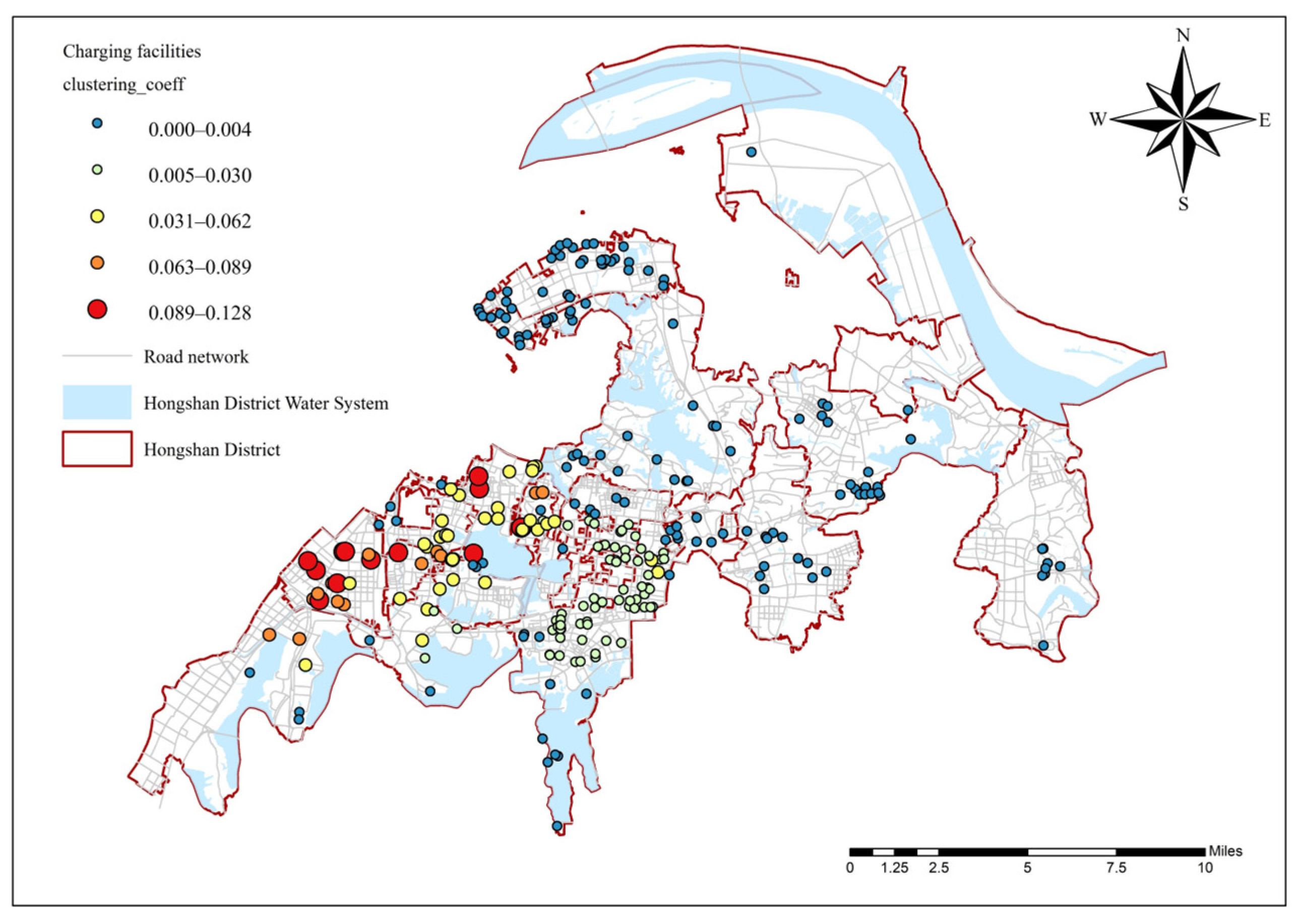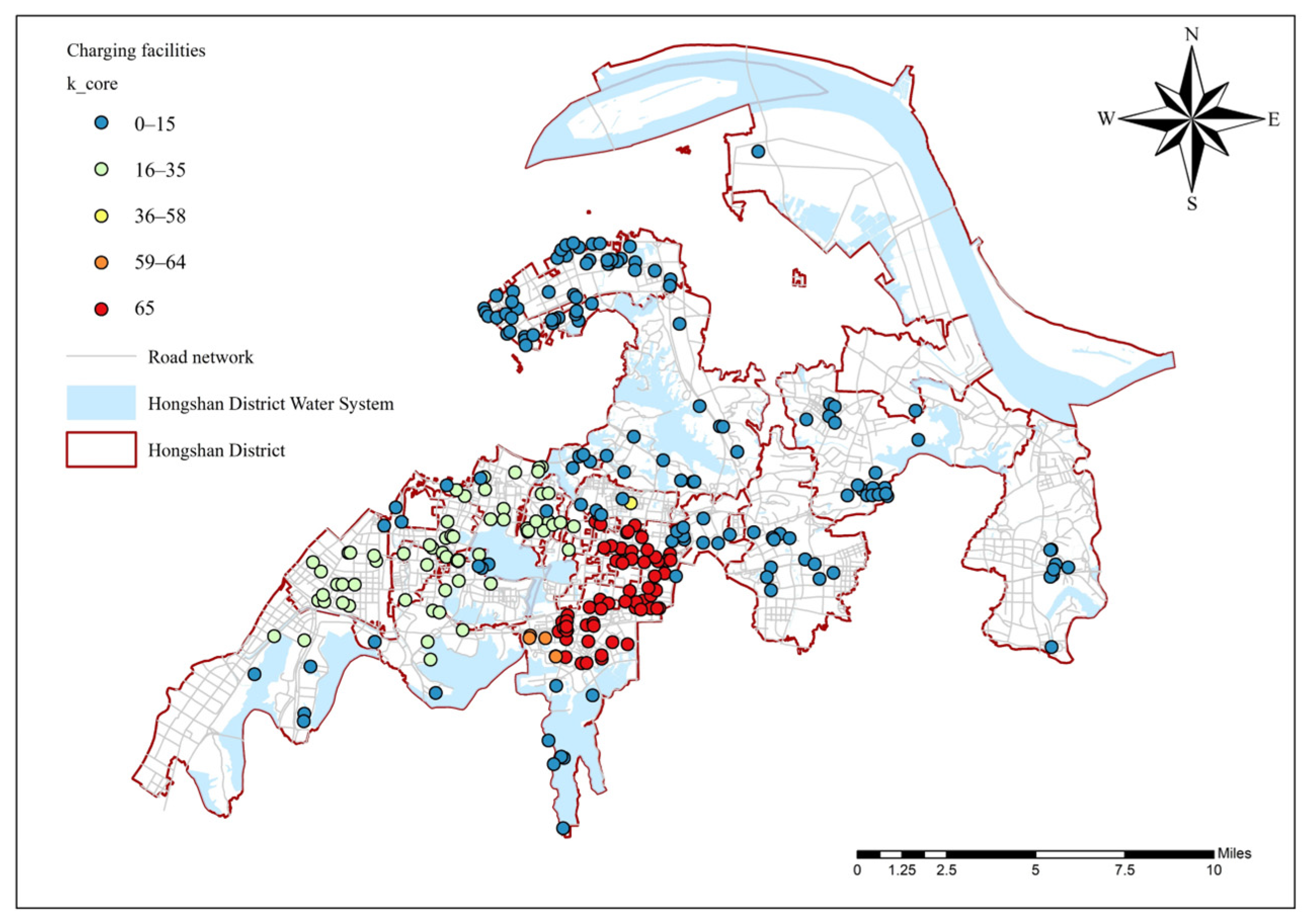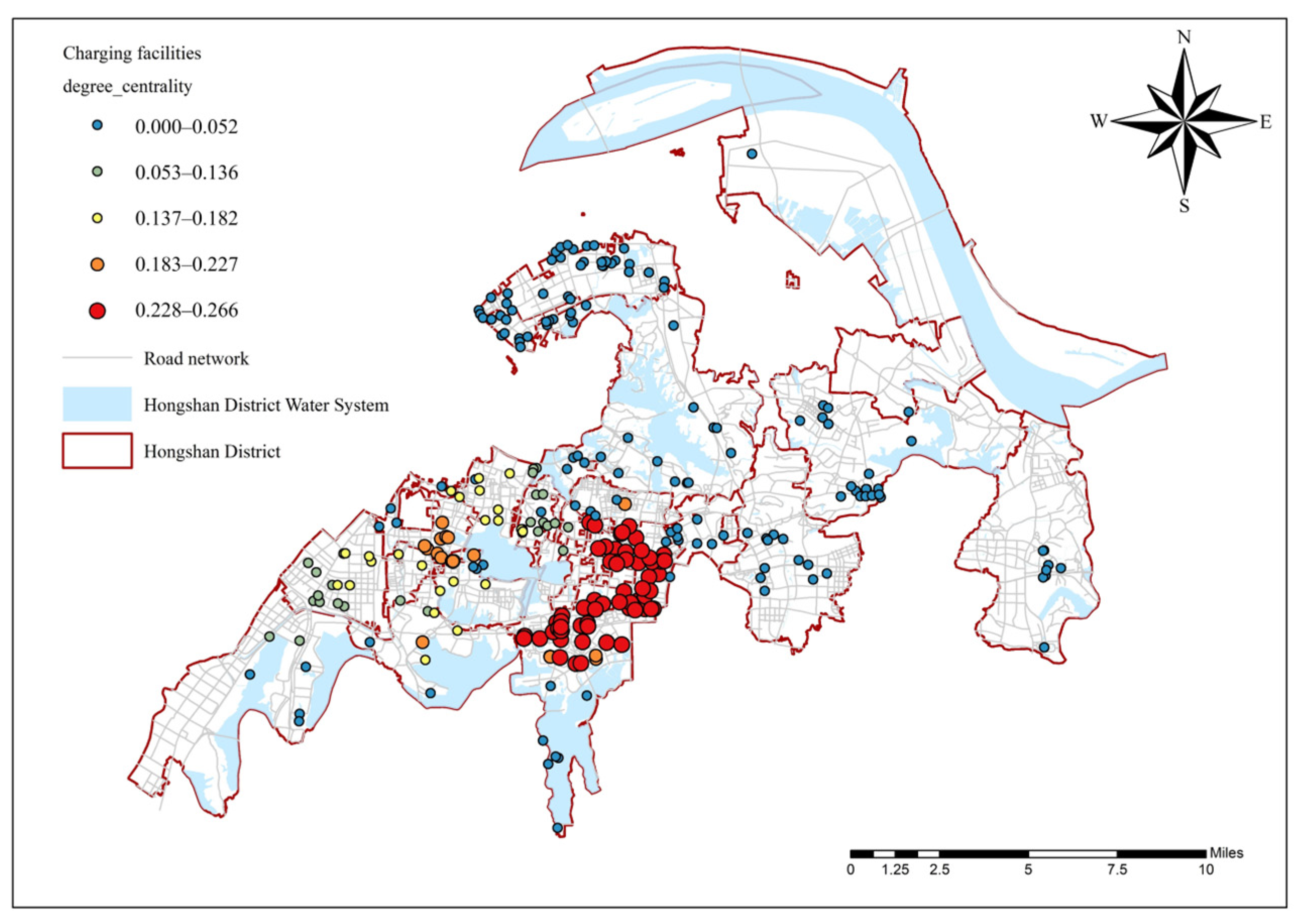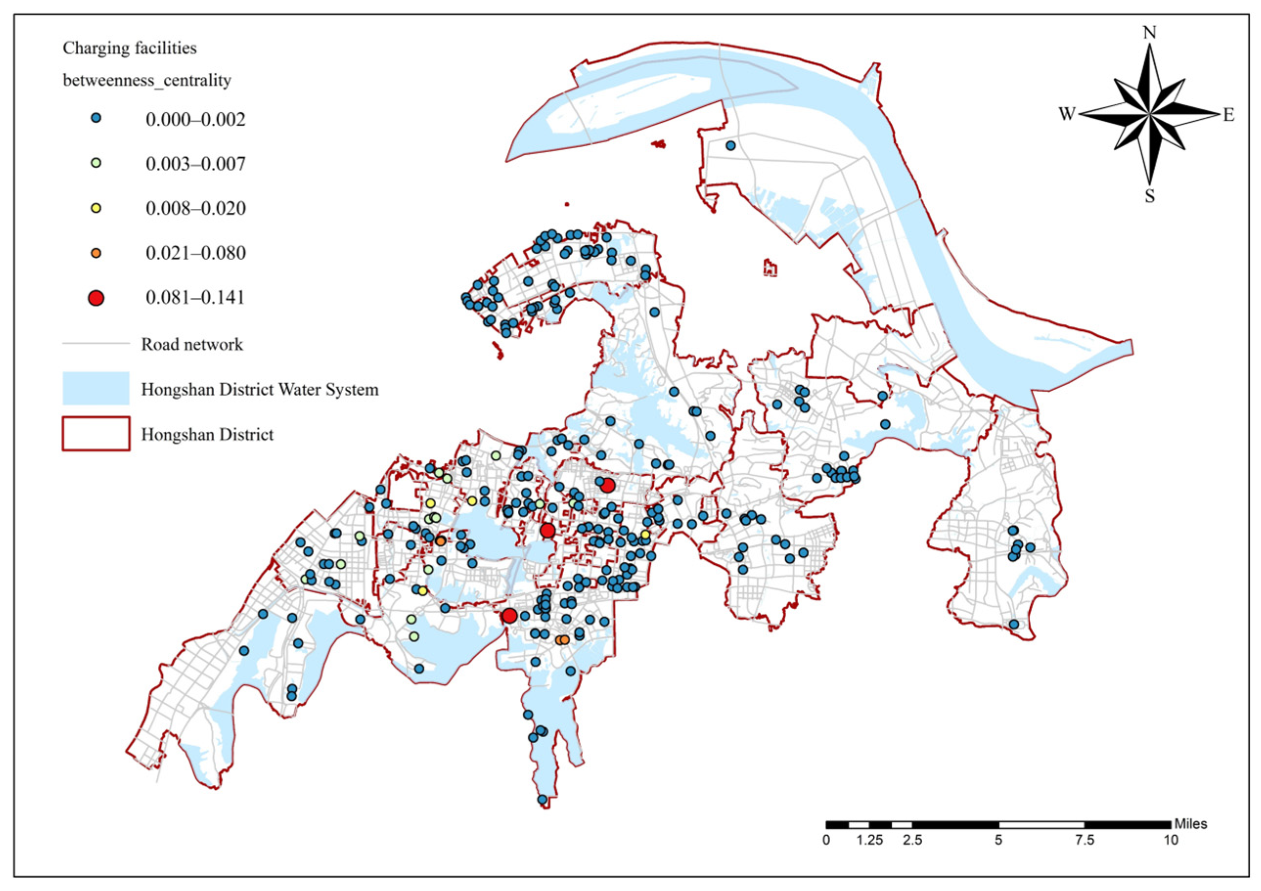 36]. Wang Wentao et al. constructed an electric vehicle charging infrastructure network model based on complex network theory, and applied this model to analyze the charging infrastructure networks of four cities: Shanghai, Xi’an, Hefei, and Dalian [
