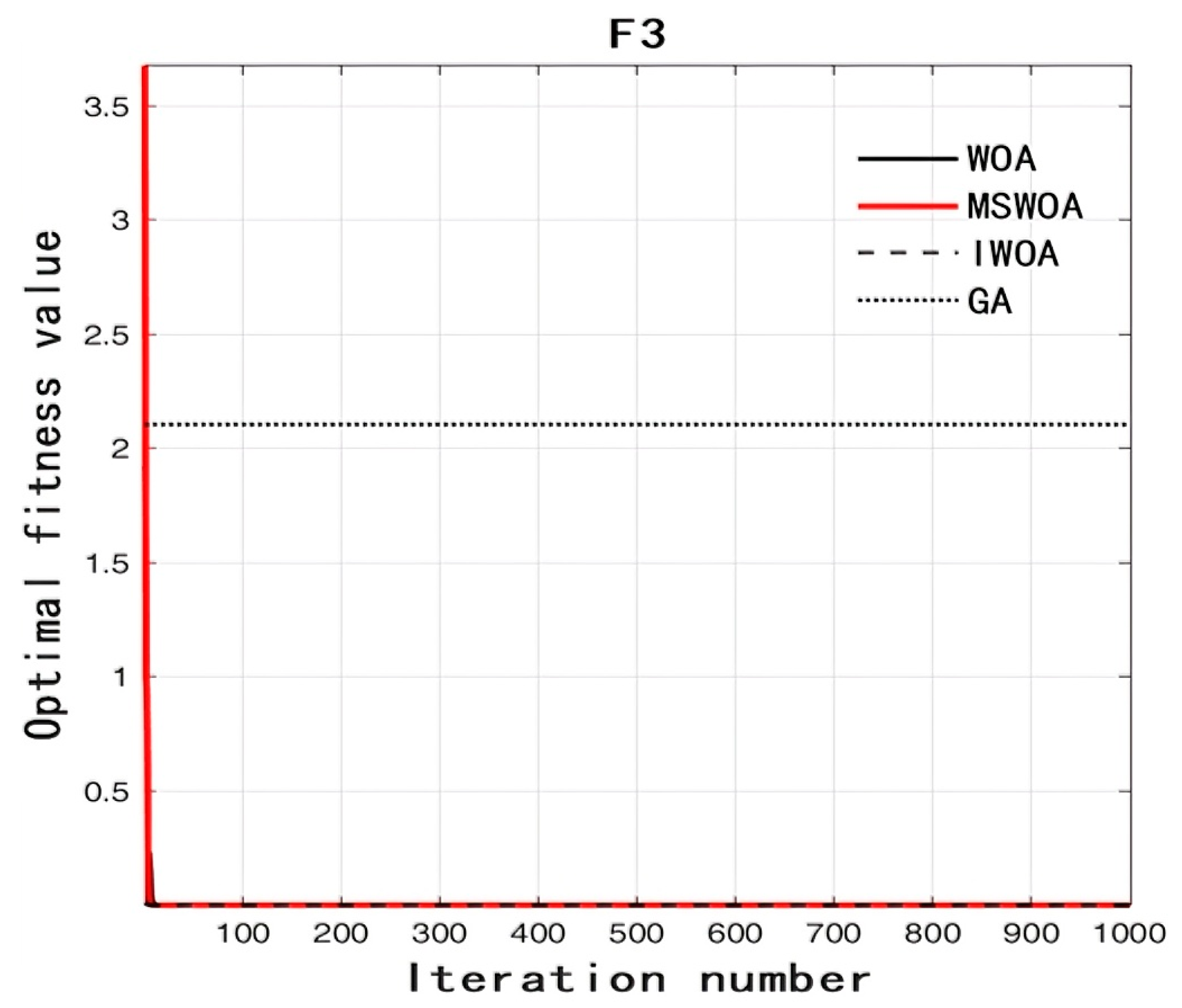 Figure 5. Fitness curve vs. iteration number of function F3.