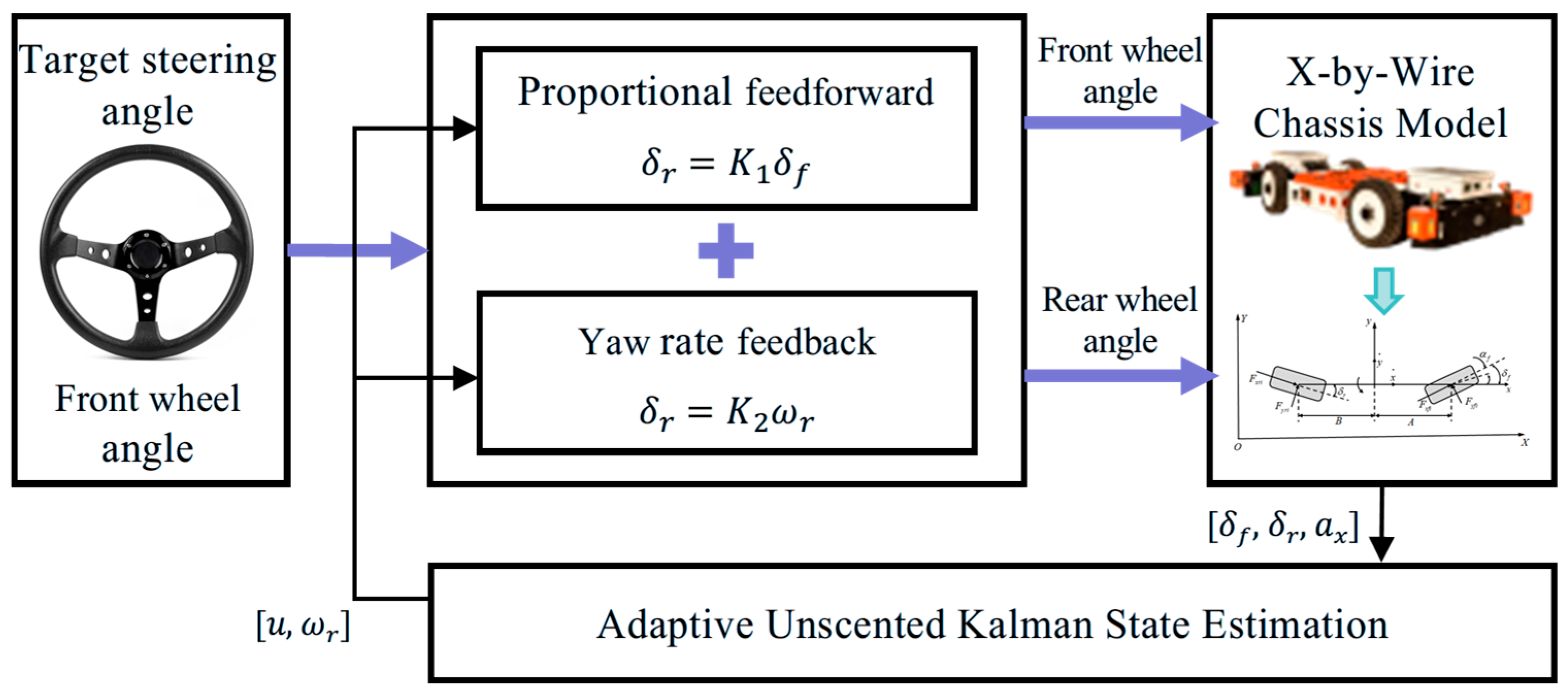 The typical feedforward and feedback control concept is a combination of proportional feedforward control and yaw rate control [