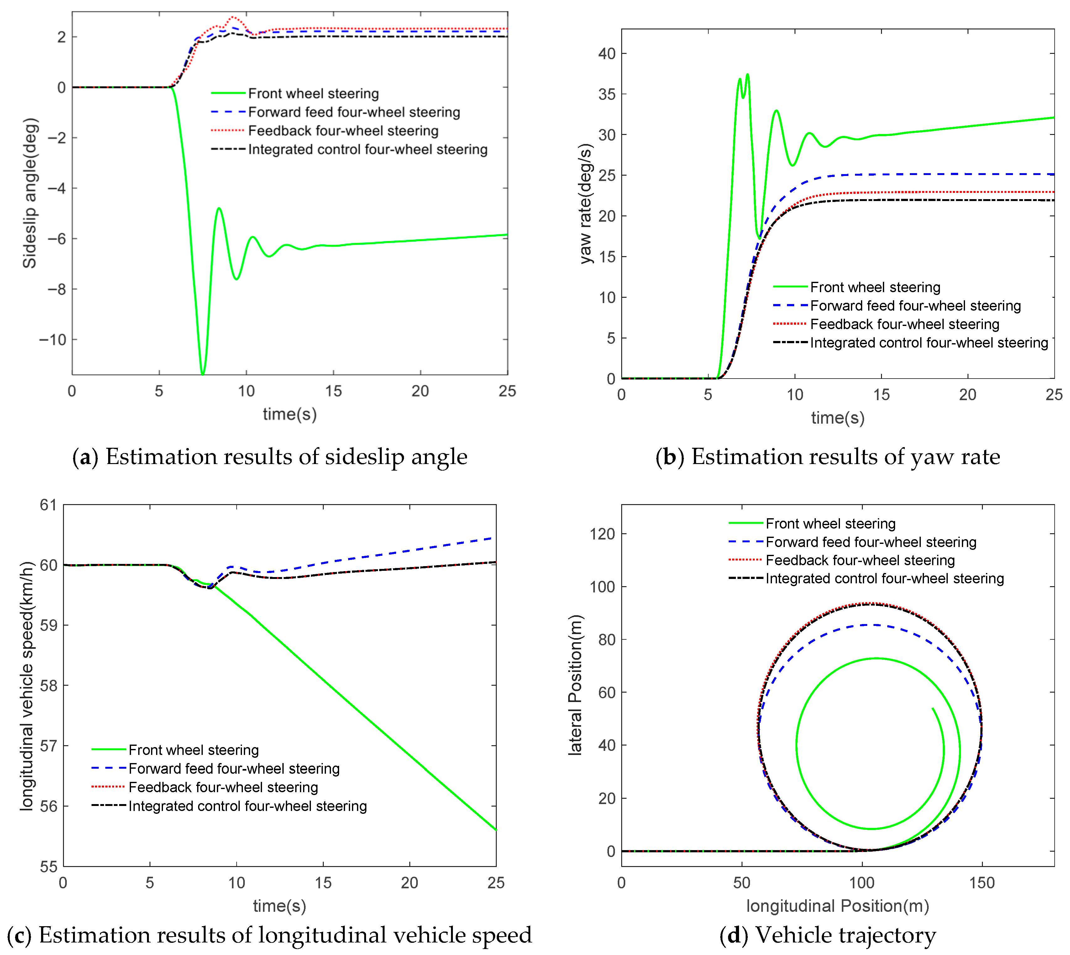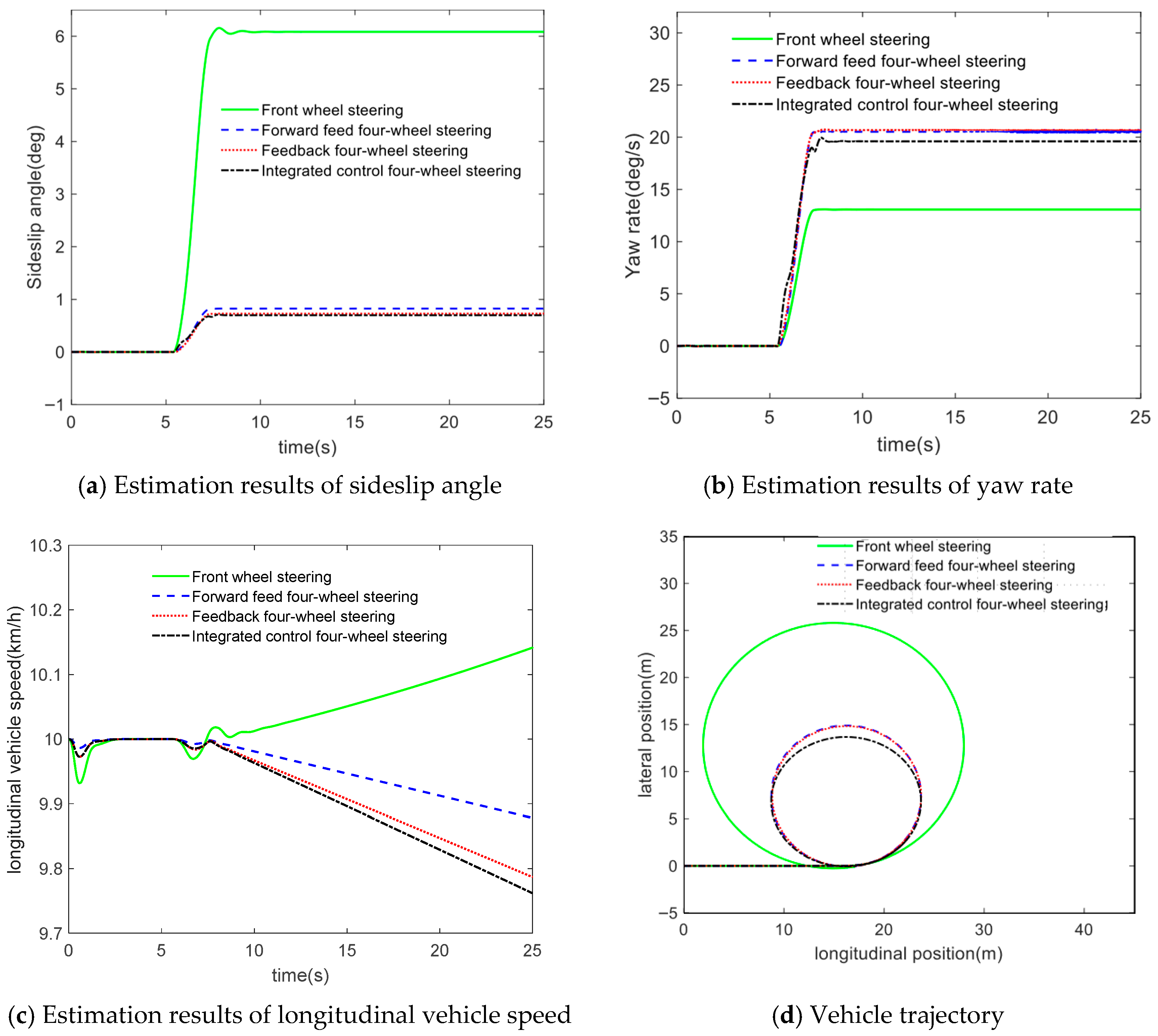 4]; Sano et al. proposed an open-loop proportional control strategy to achieve a steady-state sideslip angle of zero at the vehicle’s center of mass. However, this method is susceptible to external disturbances [