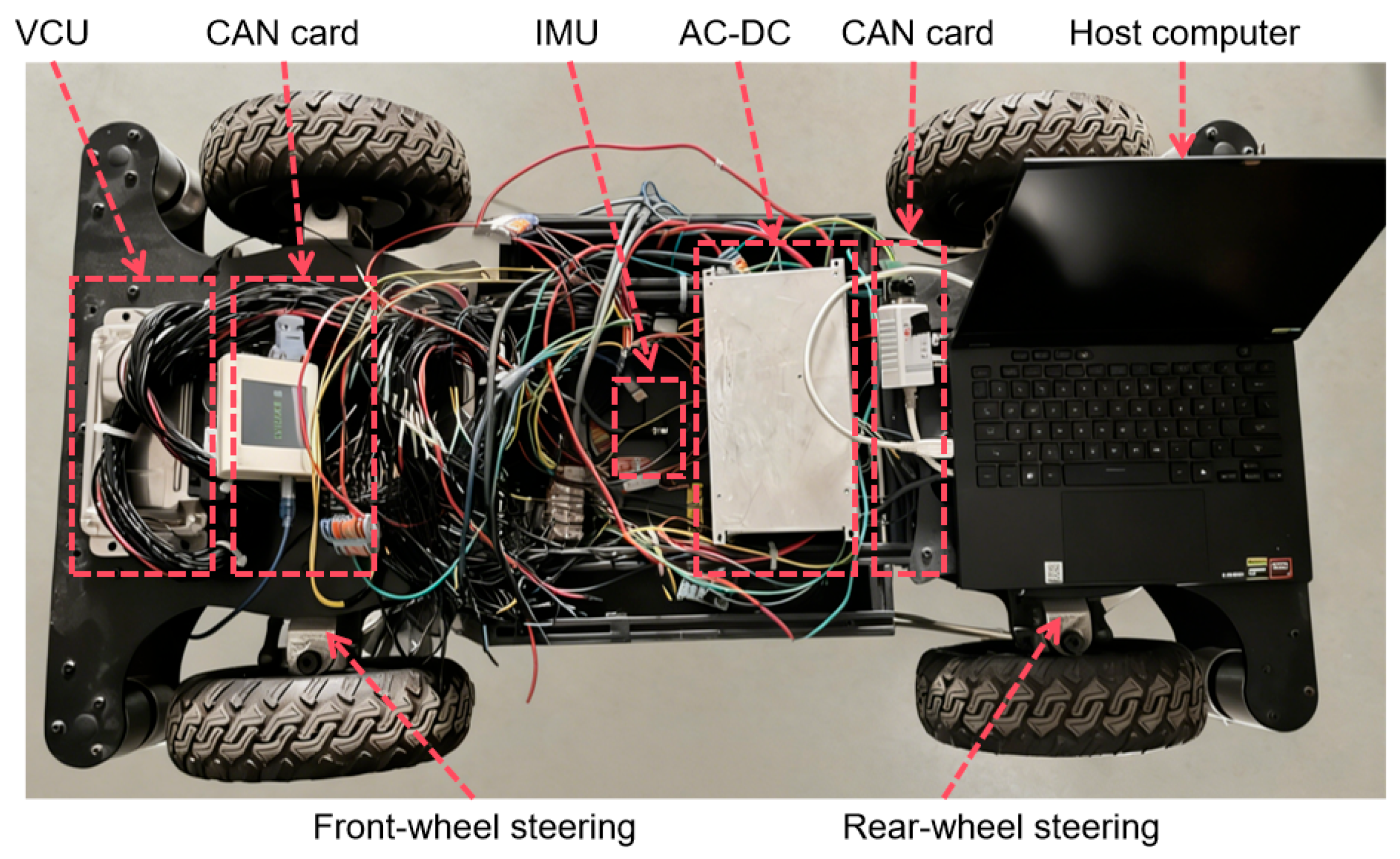 3]. At the same time, regarding the practical problems of limited space and complex environment for auxiliary transportation operations in underground coal mines, the traditional front-wheel steering system has been exposed to have many limitations and shortcomings in dealing with flexible operations in complex terrains and confined spaces. Therefore, the X-by-wire chassis adopts a four-wheel steering mechanical architecture, and how to coordinate and control the front and rear dual axle four-wheel steering angles and improve the maneuverability and stability of the X-by-wire chassis have become key research areas [