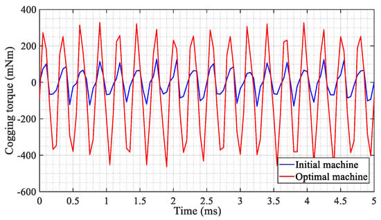 - Bianchi, N.; Bolognani, S. Design techniques for reducing the cogging torque in surface-mounted PM motors. IEEE Trans. Ind. Appl. 2002, 38, 1259–1265. [Google Scholar] [CrossRef]
