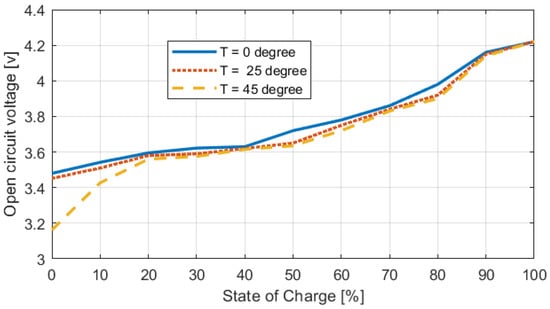 - Zhang, R.; Xia, B.; Li, B.; Cao, L.; Lai, Y.; Zheng, W.; Wang, H.; Wang, W.; Wang, M. A study on the open circuit voltage and state of charge characterization of high capacity lithium-ion battery under different temperature. Energies 2018, 11, 2408. [Google Scholar] [CrossRef]