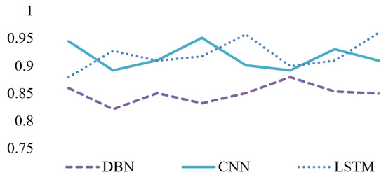 The second part of this paper focuses on the application of deep learning technology in recognizing dangerous driving behaviors. Deep learning models exhibit superior capabilities in processing complex big data, particularly through their ability to automatically learn effective feature representations from raw data without the need for manual feature extraction. Key strengths of deep learning include its robust learning capacity, excellent portability, and efficient performance, which enable it to adapt seamlessly to diverse data sources and application scenarios. As illustrated in Figure 10, the image depicts the recognition accuracy of fatigue driving detection achieved through deep learning methodologies [24,61,68,69,70,71,74,93,94,95,96,97,98,117,118,119,133,134,159].