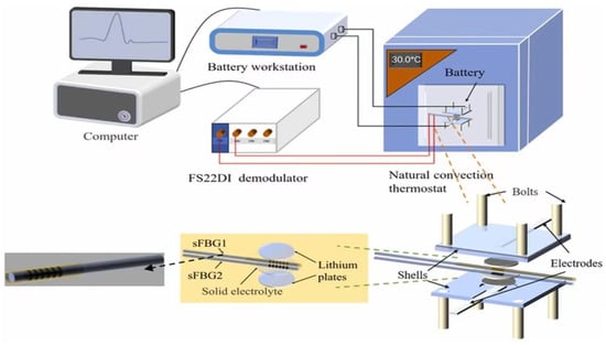 - Xi, J.; Li, J.; Sun, H.; Ma, T.; Deng, L.; Liu, N.; Huang, X.; Zhang, J. In-Situ Monitoring of Internal Temperature and Strain of Solid-State Battery Based on Optical Fiber Sensors. Sens. Actuators A Phys. 2022, 347, 113888. [Google Scholar] [CrossRef]