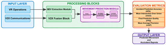 Accident prediction is a key aspect of AD, as it allows the vehicle to anticipate potential hazards and take action before an accident occurs. In recent years, there has been a significant shift towards using DL to enhance the accuracy and speed of accident prediction frameworks. DL models, especially those based on convolutional neural networks (CNNs) and recurrent neural networks (RNNs), can process large amounts of high-dimensional data in real time, enabling them to identify patterns and make predictions more accurately than traditional rule-based systems. This is exemplified by the study of Parada et al. [12], who developed a DL framework that uses V2X data to predict accidents in urban traffic.