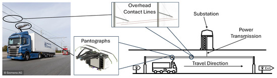 - Siemens. eHighway—Lösungen für den Elektrifizierten Straßengüterverkehr. 2024. Available online: https://press.siemens.com/global/de/feature/ehighway-loesungen-fuer-den-elektrifizierten-strassengueterverkehr (accessed on 1 February 2024).