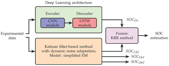 - Yu, H.; Lu, H.; Zhang, Z.; Yang, L. A generic fusion framework integrating deep learning and Kalman filter for state of charge estimation of lithium-ion batteries: Analysis and comparison. J. Power Sources 2024, 623, 235493. [Google Scholar] [CrossRef]