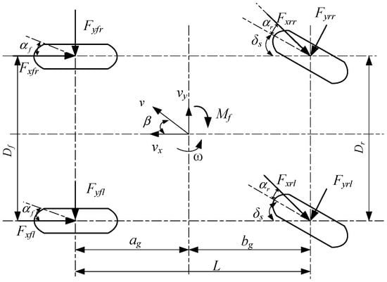 In order to reflect the nonlinear characteristics of the forklift, it is necessary to select a reasonable expression of the tire model force. The Dugoff tire model can fully reflect the nonlinear characteristics of the tire model, has a concise form, and meets the requirements of real time [23]. The expression of the Dugoff tire model is as follows: