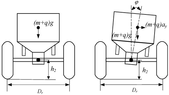 where is the vertical distance from the center of mass of the forklift to the hinged shaft of the steering axle; is the height of the hinged axle of the rear axle.