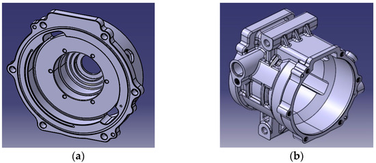 To perform the modal analysis, the main housing and front housing geometries of competitors (GMB) were used in 3D using CATIA V5R19 software. The modeling process was performed based on the actual housing and technical drawings of the competitors. Figure 5 shows the competitor’s housing modeled in the CATIA program.
