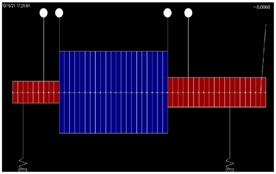 To determine whether the noise is caused by vibrations generated during the rotation of the shaft, a critical speed analysis of the main shaft was conducted. The analysis was performed using **ARMD (Advanced Rotating Machinery Dynamics) 5.6 Ver.** software developed by RBTS. The choice of ARMD was based on its proven accuracy and reliability, as validated in prior studies comparing ARMD analyses with experimental results for dynamic stability in rotating machinery. The analysis utilized 49 elements, with each element having a length of 2 mm. A rotational speed of 3000 rpm, corresponding to the operating speed of the electric compressor, was applied during the simulation. This approach aimed to accurately identify critical speeds and evaluate the potential impact of rotational vibrations on noise generation. Figure 13 shows the main shaft modeled in ARMD.