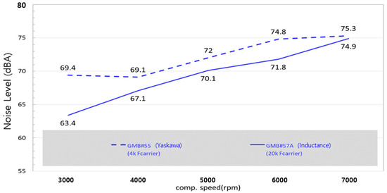 As mentioned in Section 1.1, the utilization of electric scroll compressors in EVs has emerged as a prominent industrial trend. This has led to the development of proprietary electric scroll compressor models and the production of prototypes that underwent various internal evaluations. These evaluations have confirmed that the compressor’s performance, cooling capacity, size, and weight accomplished satisfactory levels compared to competitors’ products. However, the noise levels were found to be slightly inferior to those of competitors’ products across the whole range of rotational speeds.