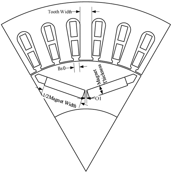 The research object of this article is an embedded V-shaped permanent-magnet synchronous motor with 6 poles and 36 slots. The design specifications of the motor are shown in Table 4.