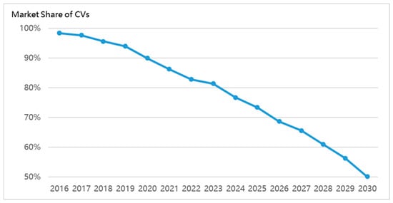 | Year | BEV/FCV/PHEV (Electric Cruising Range ≥ 50 km) | CV (Oil Consumption ≤ 2.8 L/100 km) | Other Vehicles |