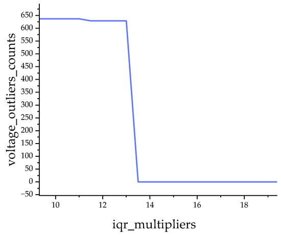 Different IQR values set varying bounds, leading to different numbers of detected outliers. Figure 4 illustrates that a smaller IQR value flags many points as outliers, but as extreme outliers deviate significantly, increasing the IQR leads to a sharp decline in the number of detected outliers. It is possible to dynamically determine boundaries based on the data. Therefore, we propose an enhanced boxplot approach, using 0.5 IQR increments to systematically evaluate the number of outliers at different threshold levels, which allows for the dynamic determination of boundaries based on the data. By examining the data distribution closely, we identified two distinct categories of outliers, as follows: