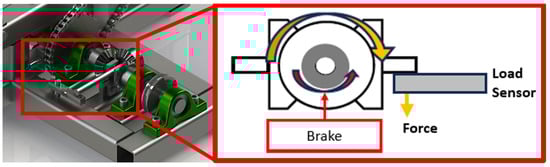 The design of torque measurement in a chassis dynamometer for LEV using a Prony Brake mechanism with a load sensor involves a combination of mechanical and electronic components to accurately assess the torque output of a vehicle as shown as Figure 5. The Prony Brake works by applying a controllable resistance to the rotating drum connected to the vehicle’s wheels. This resistance generates a measurable torque, which is then captured by the load sensor. The load sensor, typically a strain gauge, detects the force exerted by the brake and converts it into an electrical signal proportional to the torque. By carefully calibrating the load sensor and ensuring the Prony Brake applies a consistent and uniform resistance, this setup provides an accurate measurement of the torque produced by the vehicle’s engine under various operating conditions. This method is particularly useful for testing and tuning, as it allows engineers to precisely monitor and adjust the engine’s performance based on the torque output.