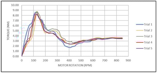 Operator variability may have contributed to inconsistencies in the test results, affecting measurement accuracy (Figure 14). In this context, the standard deviation obtained from the torque versus RPM tests is 0.34, indicating a relatively low level of variation. This suggests that, despite the potential impact of human factors on the results, the test data remain fairly consistent. This standard deviation provides insight into the reliability of the measurements, demonstrating that the performance data for the electric motor is still robust even with operator variability.