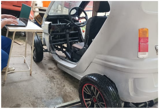 Figure 1 shows the chassis dynamometer for light electric vehicles. The chassis dynamometer is an essential instrumentation tool for accurately measuring the performance of light electric vehicles (LEVs), according to Zhang []. It provides a controlled environment where various performance metrics, such as power output, efficiency, speed, and torque, can be tested under simulated driving conditions (Sumarsono) []. For LEVs, which are designed for efficiency and agility in urban settings, understanding these performance characteristics is crucial for optimizing design, safety, and energy consumption. The chassis dynamometer allows engineers to evaluate how different components—such as the electric motor, battery, and drivetrain—interact and perform under load, ensuring that the vehicle meets regulatory standards and delivers reliable performance in real-world conditions (Reick) []. This precision testing is vital for refining vehicle designs, improving energy efficiency, and enhancing the overall user experience, making the chassis dynamometer an indispensable tool in the development and validation of LEVs.