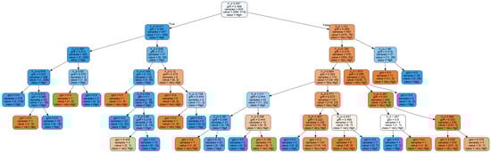 Since predictive power was high (total r-squared = 85.9% for ANN) and the root mean square error was low (RMSE = 0.0817 for LSTM), a validation test was conducted using the SHapley Additive exPlanations (SHAP) package to determine the score of importance among the variables [97]. Table 2 presents the normalized importance scores of the key service quality variables influencing passenger satisfaction. Moreover, further classification techniques using different decision tree algorithms were employed. As depicted in the study of Chen et al. [101], decision trees provide significant factors that would delineate the target objective. However, only those which are highly significant would be present in the output. In this case, the random forest classifier optimum output was presented (Figure 6).