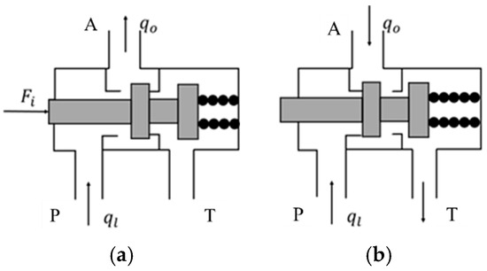 Figure 2. A port is the oil outlet, P port is the oil inlet, and T port is connected to the oil tank. The final mathematical model must be adjusted and verified in combination with the actual solenoid valve design and experimental data to ensure the accuracy and reliability of the model. In the actual modeling process, it is also necessary to refer to the relevant engineering manuals and standards, as well as experimental tests to obtain the necessary parameters.