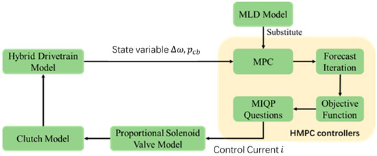 Therefore, the HMPC algorithm has the potential to enhance the real time of the control process, thereby improving the system’s adaptability to varying working conditions and demand changes. The HMPC framework is based on hybrid system modeling, decoupling the continuous dynamics and discrete logic of the dynamical system. This modular design enables it to flexibly adapt to hybrid power systems of different configurations. It reduces the real time and enhances the robustness of the control process, and is more suitable for mode switching in hybrid drivetrains.