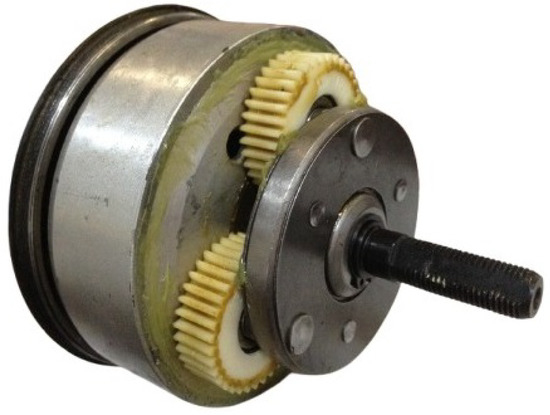 One of the first attempts to produce a DM to be applied to EVs moved with an HM had a planetary gear differential that sent the rotation of the external rotor of the high-speed BLDC motor directly to the wheel rim (see Figure 2), decreasing the output speed; however, this action increased the mass of the wheel, which did not to affect if an arrangement with a larger suspension damping was implemented.