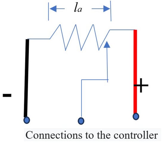 Generally, the maximum angle of a commercial pedal accelerator is smaller than the maximum opening angle of the mass lever. Furthermore, according to Equation (11), the distance traveled by a fraction of the lever arm and must be the same as the opening of the accelerator; therefore,