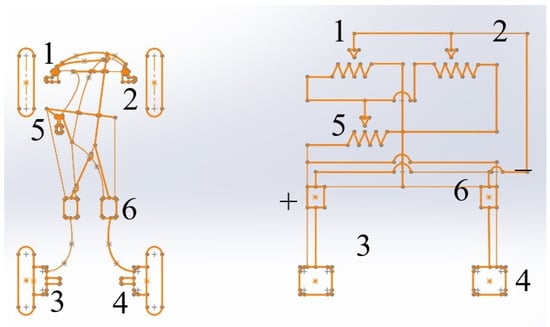The electronic design of our DEM is based on Figure 6 and Figure 9. At , throttle 1 is completely closed; this is maximum acceleration mode. This throttle is connected on one side to controller 6 of HM4, and, on the other hand, it is connected in series to throttle 5, which has a complete knob to accelerate or decelerate, which allows a rectilinear advance.