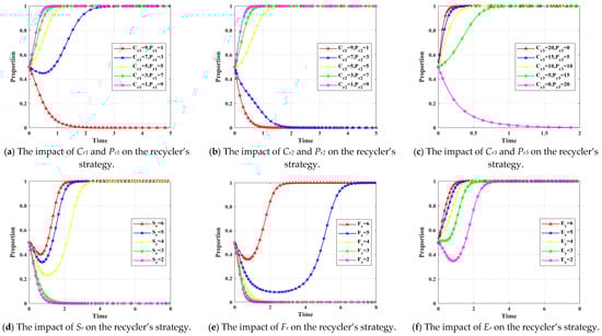 When the probability of manufacturers participating in recycling is high, regardless of the strategy adopted by consumers, recyclers tend to choose compliant recycling. Conversely, when the probability of manufacturers participating in recycling is low, recyclers will make decisions based on whether consumers adopt environmentally friendly behaviors.
