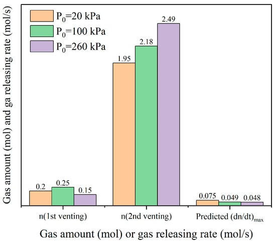 Figure 7. Comparison of gas amount and predicted maximum gas release rate under different ambient pressure.