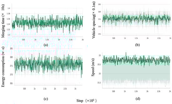 Among them, when the vehicle safely merges into the platoon, it is considered a success. The minimum value of the TTC (Time to Collision) when the vehicle cuts in by overtaking is 7.1 s [22]. and are the weighting coefficients of safety and comfort, respectively, and can be adjusted according to the actual scenarios and requirements.