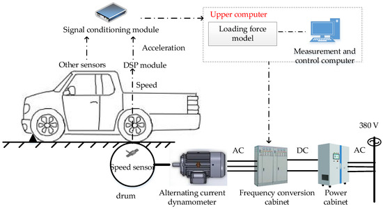 - Zheng, X.X. Research on Test Technology of Chassis Dynamometer Based on Dynamic Loading of Rolling Resistance and Prediction of Motion Parameters. Master’s Thesis, Zhejiang University, Hangzhou, China, 2018. [Google Scholar]