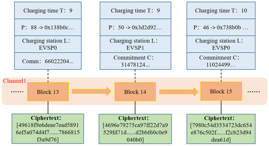 Figure 9 illustrates the configuration of two separate channels within the consortium blockchain for charging reservation purposes. Channel1 is dedicated to EV charging reservations, while channel2 is specifically designated for EVSP ciphertext aggregation and charging subsequent deviation settlement processes. This design ensures that the EVSP cannot access the reservation plaintext information of individual electric vehicles, and the TTP remains unaware of the source EV associated with specific reservation and charging deviation information.