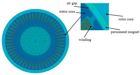 Permanent magnet synchronous motor grid model finite element simulation diagram.