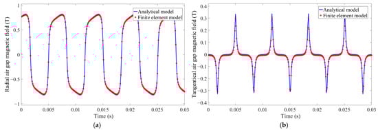 Verification effect of synthetic air gap magnetic field under static eccentricity. (a) Verification effect of radial air gap magnetic field. (b) Verification effect of tangential air gap magnetic field.