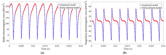 Verification effect of electromagnetic wave under static eccentricity. (a) Radial electromagnetic wave verification effect. (b) Tangential electromagnetic wave verification effect.