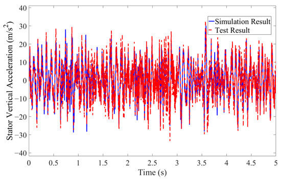 Comparison between simulation and test of stator vertical acceleration.