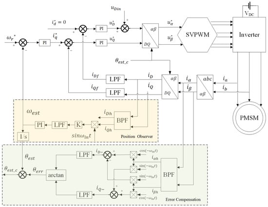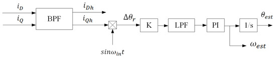 The observer obtains the rotor position information through the phase-locked loop (PLL) to control in order for it to converge to 0, and then the estimated rotor position error angle ∆θ is close to zero. A control block diagram is shown in Figure 3.
