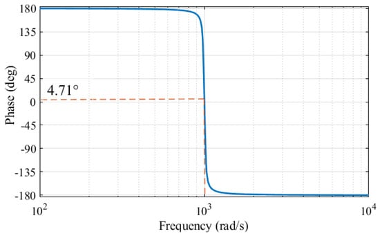 The phase–frequency curve of the second-order BPF in a Bode plot is shown in Figure 4. Where is 1000 Hz and the frequency range of the BPF is set to 987 Hz to 1018 Hz. The phase delay of the positive- and negative-phase high-frequency currents is 4.71°. Considering the phase delay of the filters used in the control system, Equation (10) can be expressed as