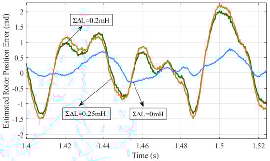 The asymmetry of the motor parameters is the cause of the difference self-inductance. Consequently, the estimated rotor position error manifests as the second-order harmonic, as illustrated in Figure 5. It is noteworthy that the greater the difference, the more significant the harmonic amplitude.