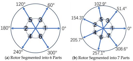where is the basic deflection angle between rotor segments and is the number of rotor segments (this paper takes the case of the rotor being evenly divided into 8 segments as an example).